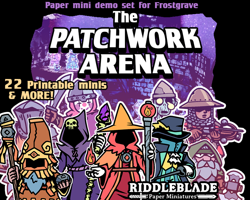 one multi-page print-ready pdf full of paper minis, and a bonus scenario pdf featuring ready-to-play demo character sheets.